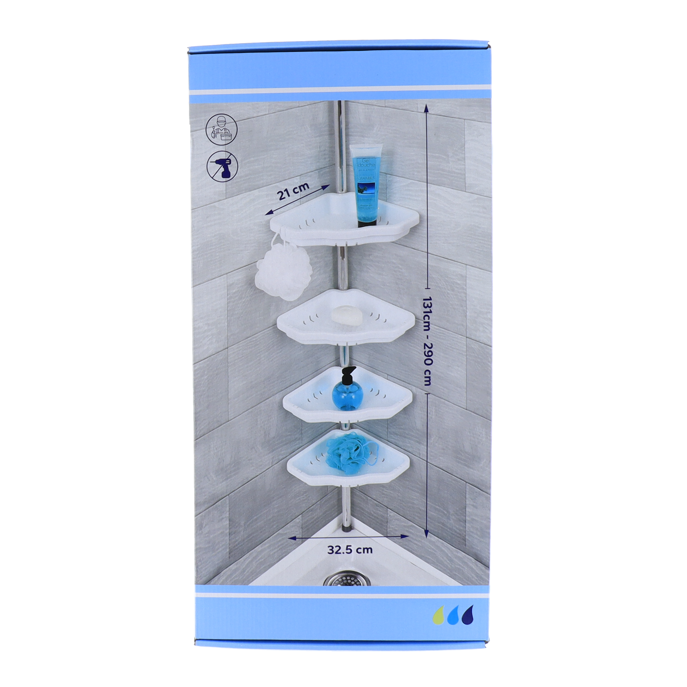 ALUMINIJSKI TELESKOPSKI STUP ZA TUŠ – 4 KOŠARICE + 1 POSUDA ZA SAPUN 260cm, BIJELI, TD