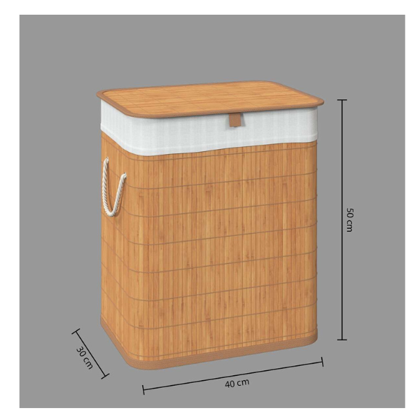 Svojim inovativnim dizajnom, ova košara za rublje od bambusa oduševit će svakoga. Iznutra je obložena tekstilnim umetkom. Za lakše prenošenje, košara sa strane ima dvije ručke. Dimenzija: 41,5x30x50 cm.