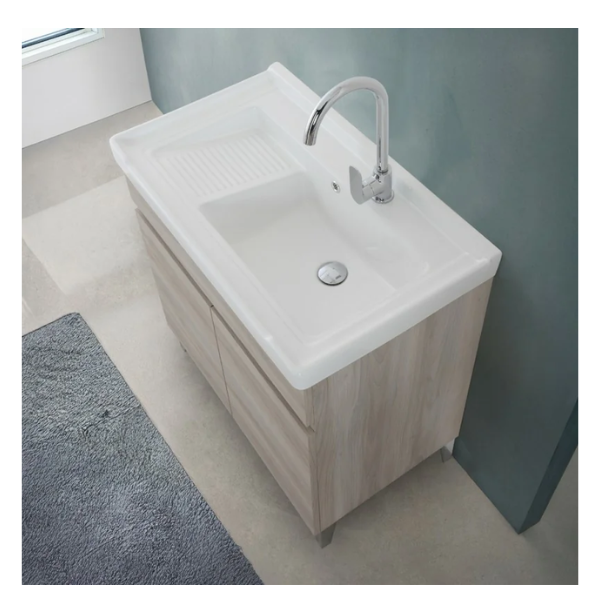 Visokokvalitetni keramički sudoper sa namjenskim prostorom za ribanje, prelivnim otvorom i praktičnim otvorom za slavinu.