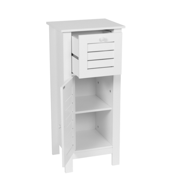 Kupatilski ormarić Santorini donosi savršen spoj funkcionalnosti i minimalističkog dizajna, idealan za manje kupatilo ili kao dodatni prostor za pohranu u većim kupatilima. S dimenzijama 36,5x30x83 cm, ormarić je kompaktan, ali nudi dovoljno prostora za organizaciju kupaonskih potrepština, čime pomaže održavati prostor urednim i preglednim. Izrađen od MDF-a u čistoj bijeloj boji, odlikuje se modernim, ali nenametljivim izgledom, koji lako uklopite u bilo koji stil interijera. Bijela boja daje svježinu i čistoću, čineći ormarić univerzalnim komadom koji se može kombinirati s različitim elementima kupaonice. S praktičnom ladicom na vrhu i jednim vratima ispod, ormarić nudi odličnu organizaciju za pohranu sitnica i većih predmeta. Ladica je idealna za pohranu kozmetike, sredstava za čišćenje ili drugih sitnijih predmeta koji trebaju biti pri ruci, dok prostor iza vrata pruža dovoljnu zapremninu za ručnike, toaletne potrepštine i slične predmete. Izrađen je od MDF-a, materijala koji je poznat po svojoj izdržljivosti i otpornosti na vlagu, što ga čini idealnim za upotrebu u kupaonicama. Lako se održava i čisti, te pruža dugotrajan i stabilan komad namještaja.