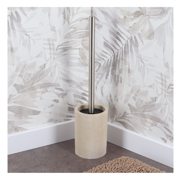 Wc četka bež boje ima rebrasti uzorak koja unosi dodatnu dozu modernosti u Vašu kupaonicu. Izrađena od kvalitetnog poliresina. Opremljena držačem četke koji spriječava izlijevanje vode. Dimenzija: 9×36 cm.