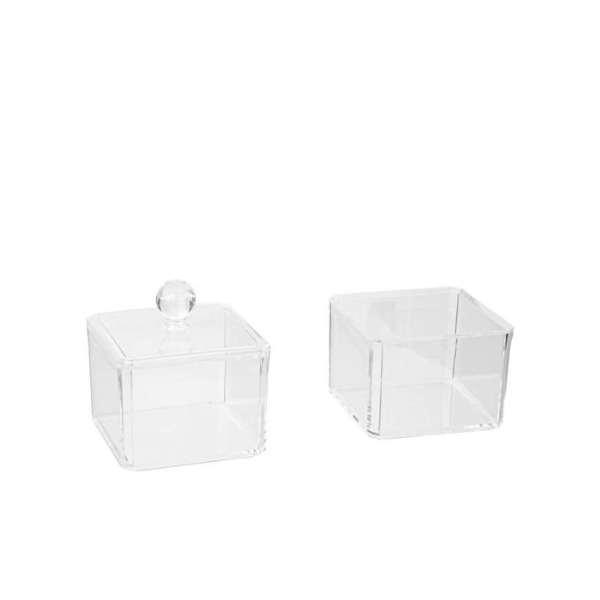 Transparentna kutija za vatu u dvije razine koja štiti vatu od prašine i prljavštine. Napravljena od kvalitetnog polistirena. Dostupna u dimenziji 9.4 x 9.4 x 10 cm.